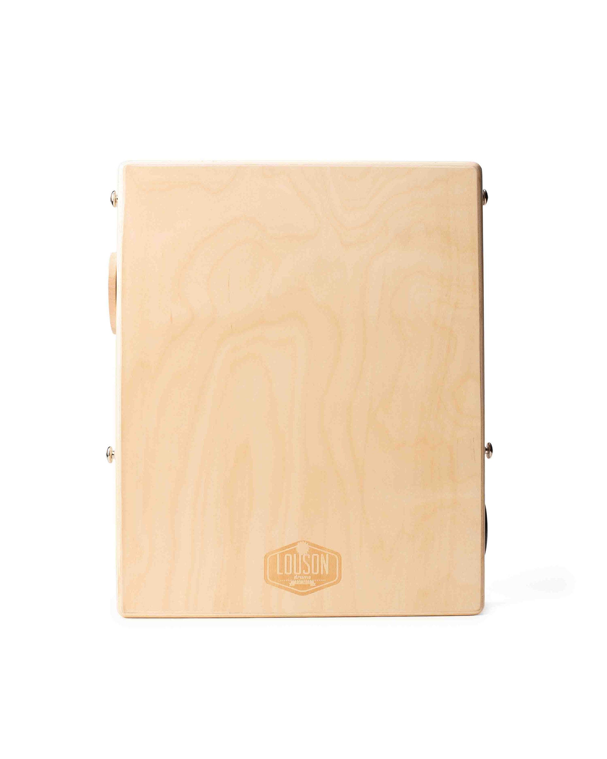 Este CajonTab® suena como un CajonTab® normal de 12" e incluye una caja extraíble y una correa de guitarra negra con el logotipo de Louson Drums.