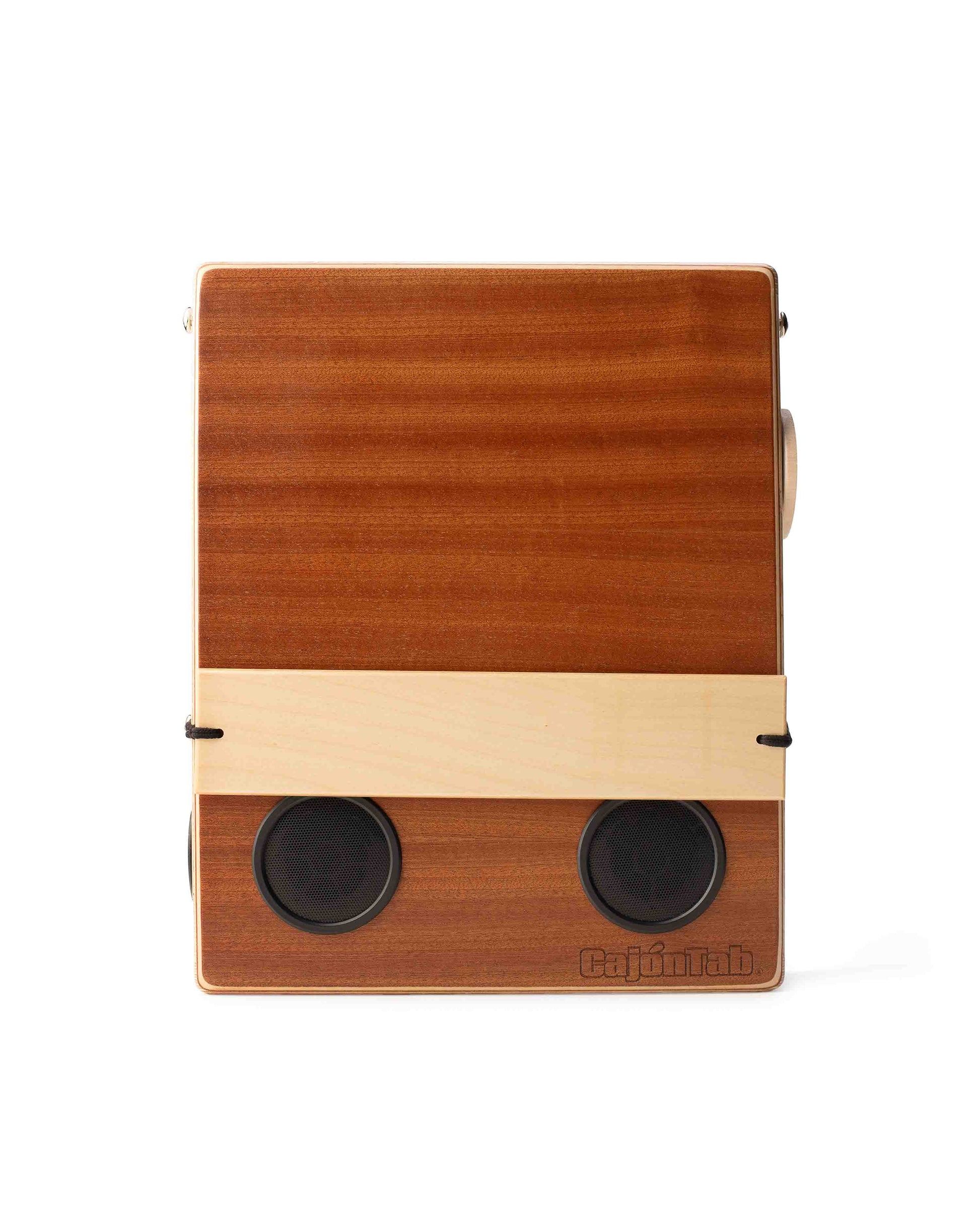 También incluye un par de parlantes "construya su propio gabinete de altavoz bluetooth", que hemos preinstalado en la cámara inferior aislada del tambor. ¡Estos parlantes son sorprendentemente ruidosos y pueden acompañar al reproductor CajonTab® ya sea tocando en la calle, improvisando o aprendiendo una lección de batería! Simplemente sincroniza los parlantes con tu teléfono y reproduce tu música, ¡directamente desde el frente de tu tambor! Los parlantes se recargan a través de USB y pueden reproducirse durante varias horas entre cargas.