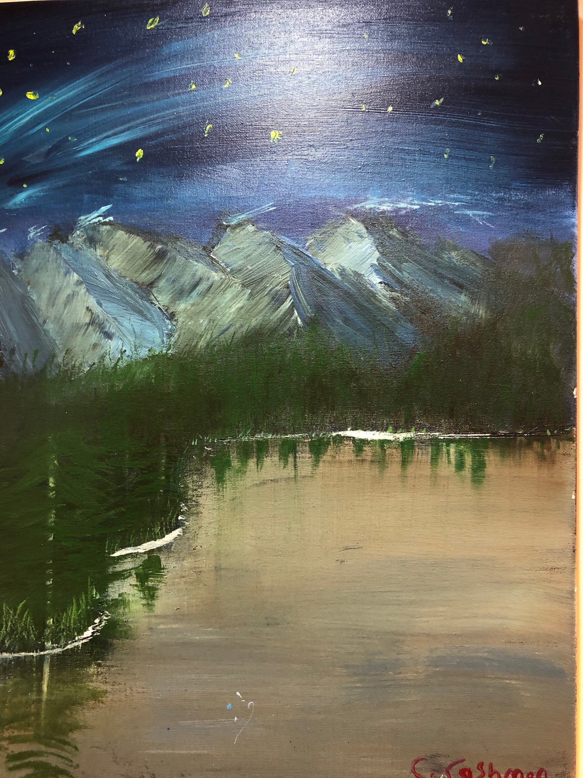 “The artist’s first landscape, an image from a mind that often wanders to the mountains for solace.”