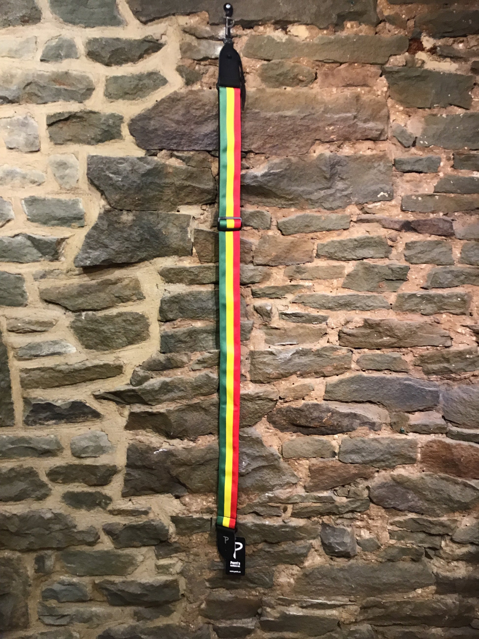 Perri’s Leathers 2” green, yellow, and red Rasta guitar strap