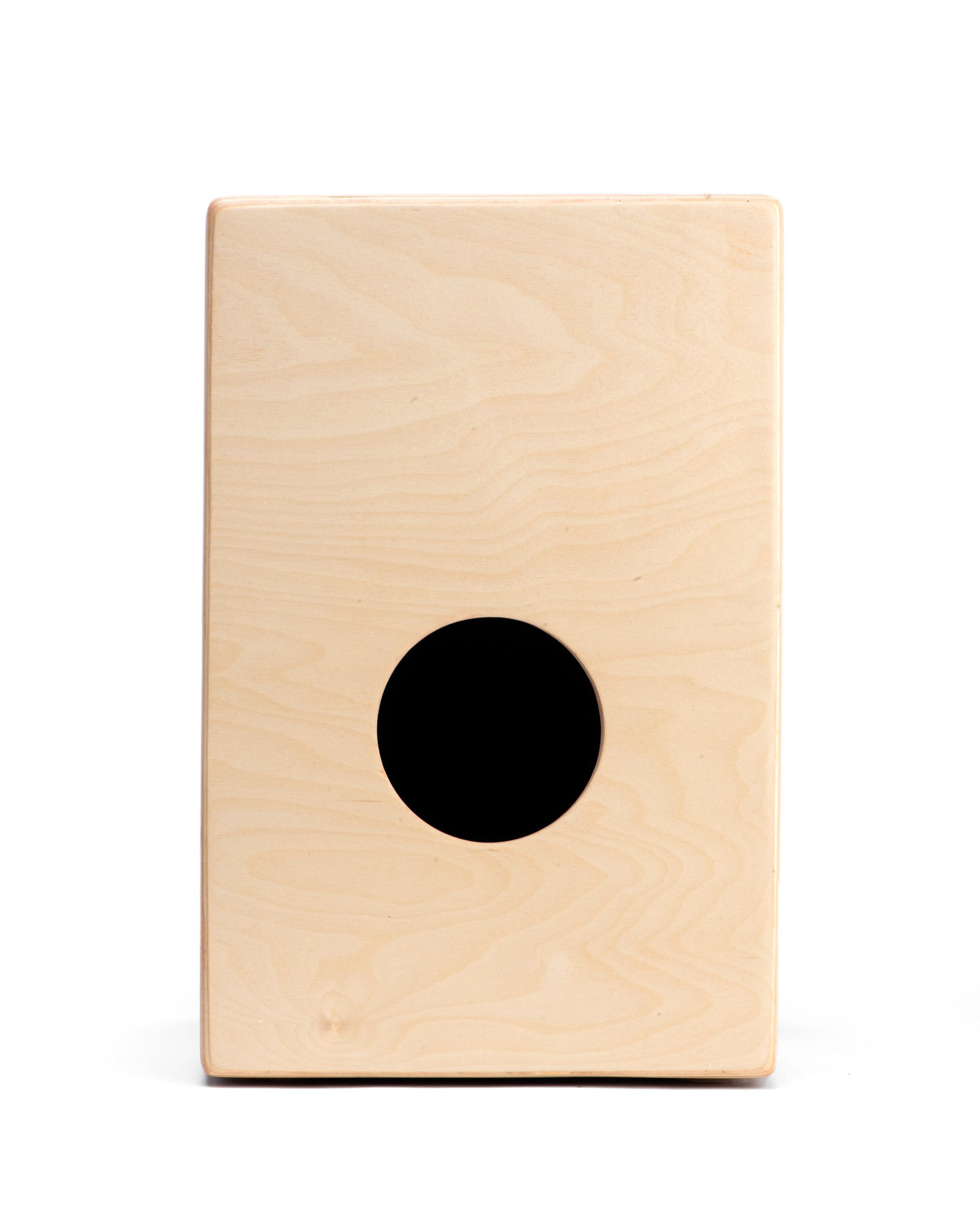 Our external snare system can easily go on and off, even during a performance. Simply reach down and remove the snare from one of the buttons holding it in place and set it to the side. The snare can also be removed and brushed across the surface of the cajon for a brush sound.